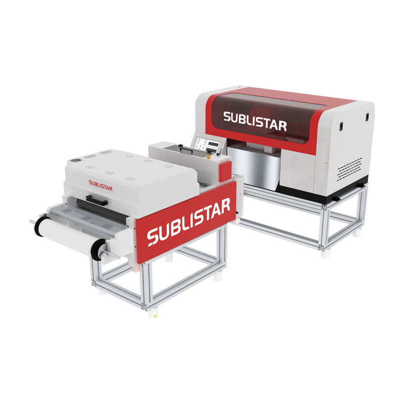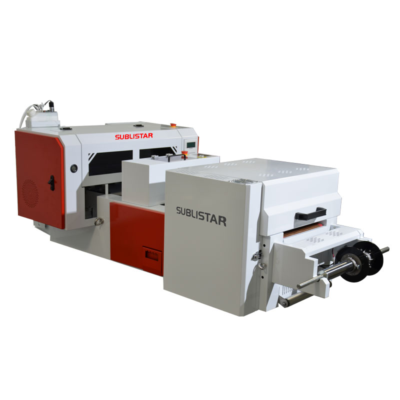 Equipped with DTF powder shaking machine, integrates vinyl powder coating & drying, SUBLISTAR DTF transfer printing machine is ideal for large volume, high-quality printing on T-shirts, cotton, poly, denim & more.